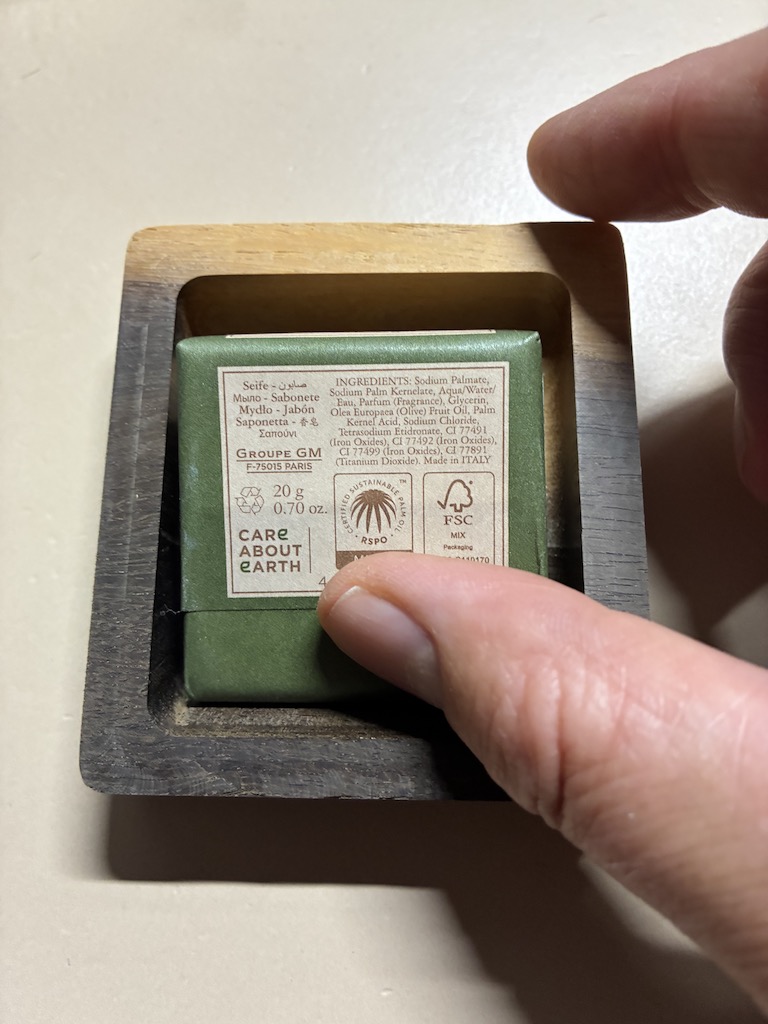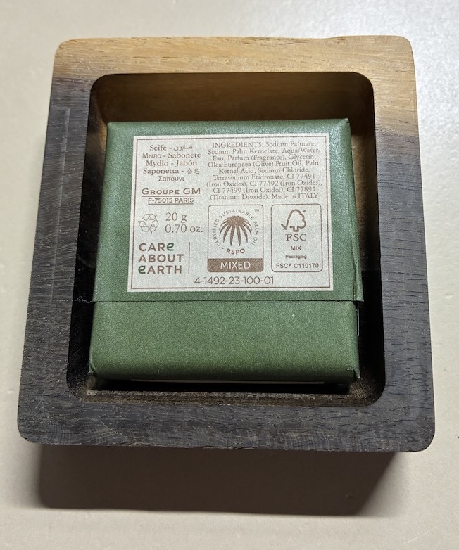 Unlike concave or slanted dishes, it allows the soap to rest flat within a distinctive raised-edge recess, preventing water spillage onto the wooden surface where it is intended to stand. The lower side can be thumb-pressed, lifting the upper side effortlessly via the tilt-slope for easy grabbing, balancing secure hold with convenient removal.